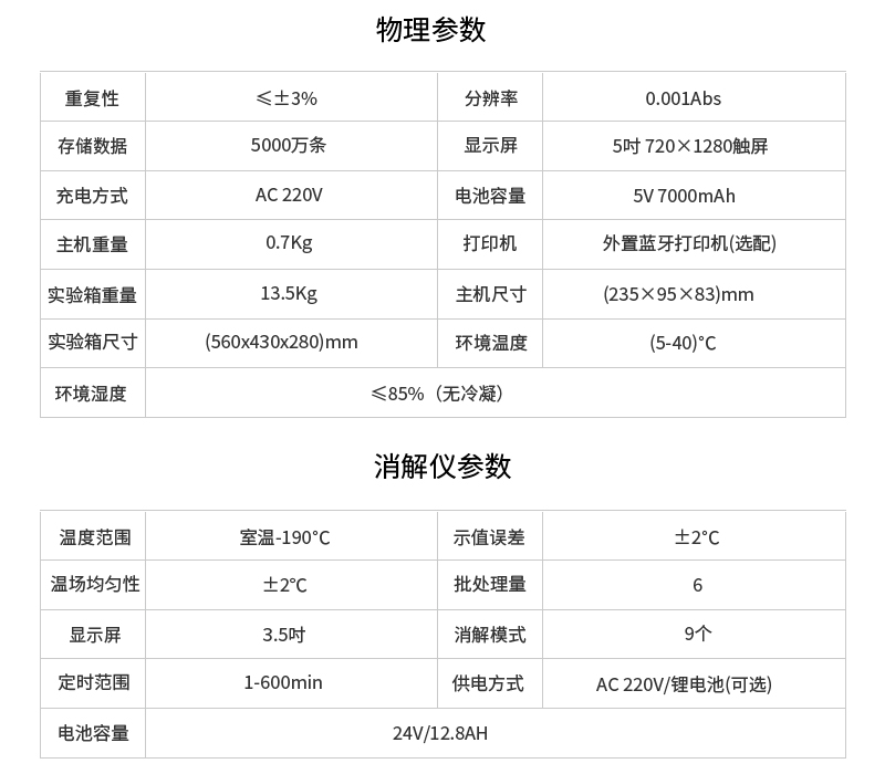 消解儀參數(shù) |