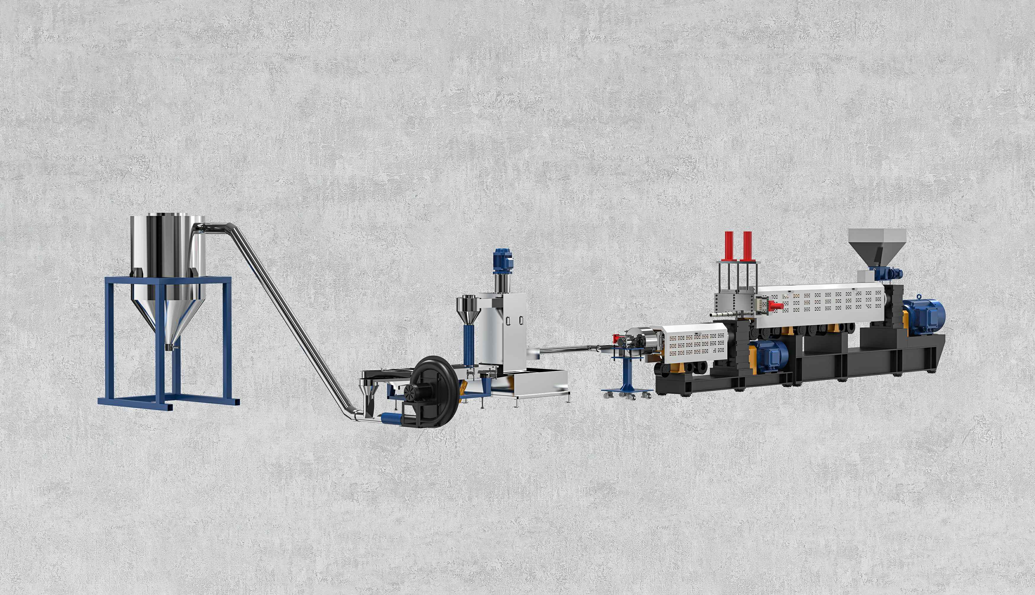減速箱采用硬齒面、高扭矩設計,運行平穩無噪音,螺桿根據物料特性特殊設計,螺桿和機筒采用優質氮化鋼或雙合金材質,大大增加設備使用壽命。機筒上采用真空排氣或自然排氣口的設計,能在生產過程中將水分,廢氣排走,使出料更穩定,顆粒更結實,成品顆粒外觀更漂亮。