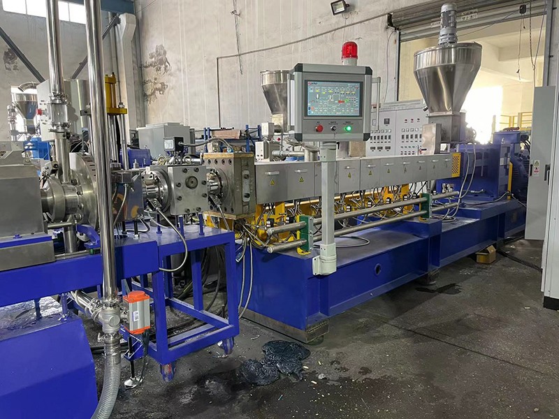 驗收PVB夾膠玻璃回收造粒-KTE-75D雙螺桿水下切造粒機組